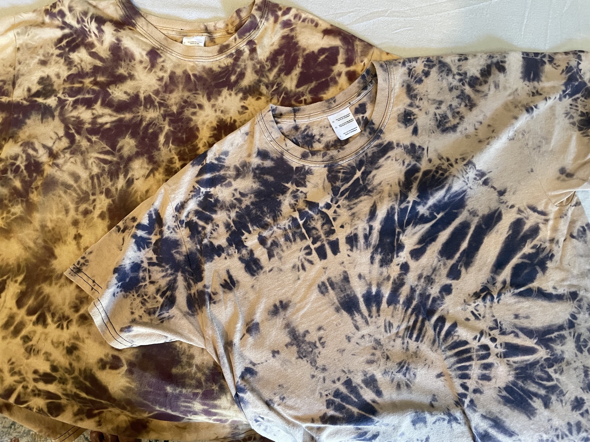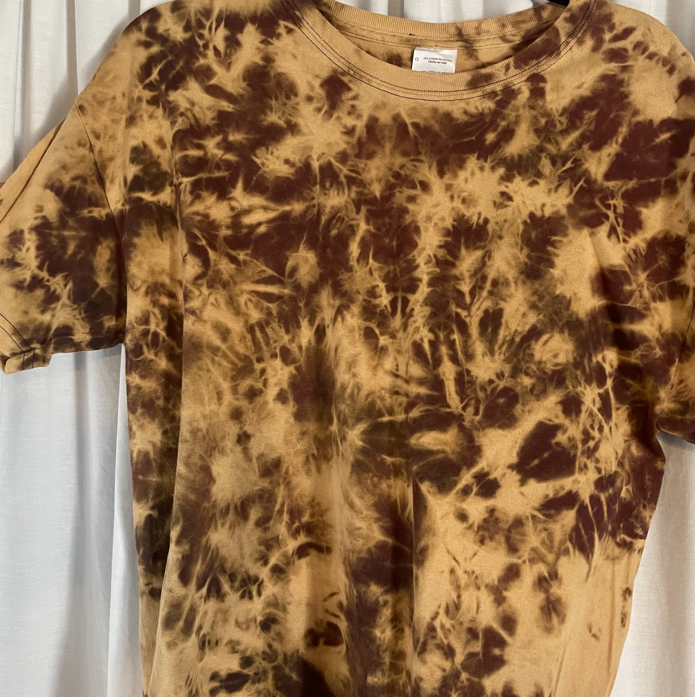 Custom hand tie dyed by American  artist-crafter. 100% cotton.  Due to process coloration varies and each T shirt is distinct